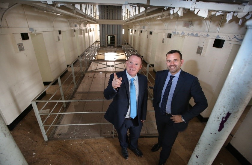 Justin Ives, left, and Dominic Gibbons inside a cell block which will be incorporated within the redevelopment