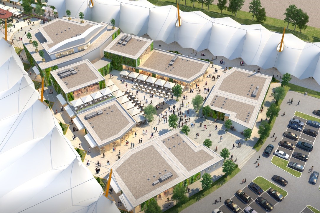 CGI of the ariel view of Ashford designer outlet